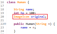 휴먼 클래스에는 슬라임 이미지(정확히는 이미지 아이콘)가 불붙은 모양으로 바뀌는 로직이 포함되어 있습니다. 그래서 원래의 이미지 아이콘을 저장할 original 변수를 선언해 두었습니다.